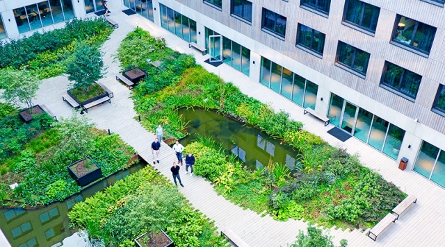 Ploché střechy budov by v budoucnu mohly sloužit k akumulaci dešťové vody a jako zelené oázy měst.