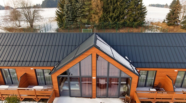 Nově rekonstruovaný penzión na horách zdobí střecha a části fasády z materiálů Prefa