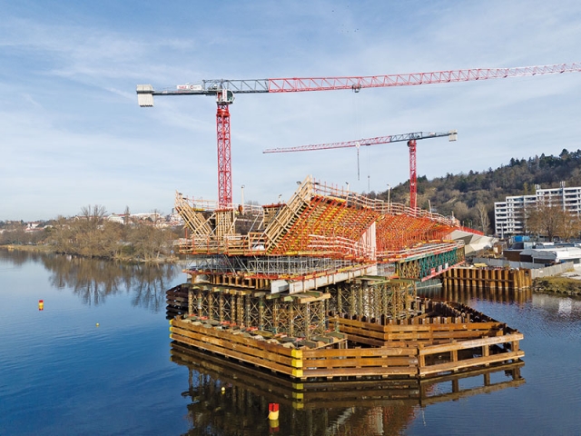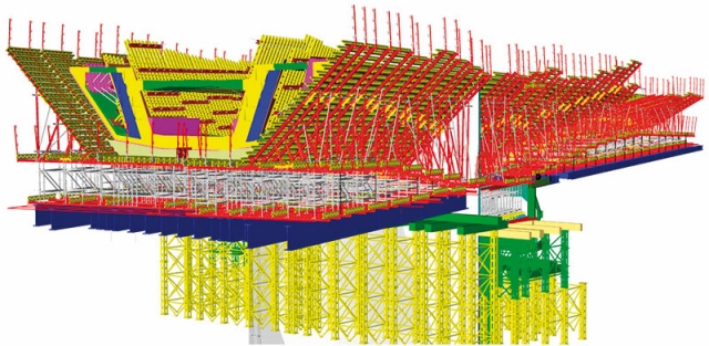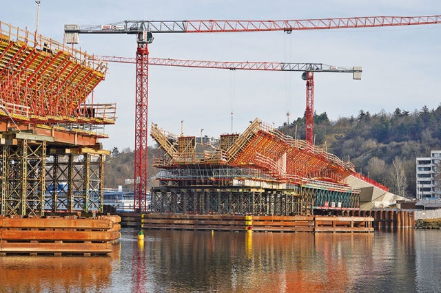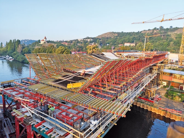 - Rámové bednění TRIO našlo své uplatnění u nepohledových částí opěr a při výstavbě informačního centra. Hlavní předností tohoto systému byla rychlá montáž, která pomohla dodržet náročný časový harmonogram.