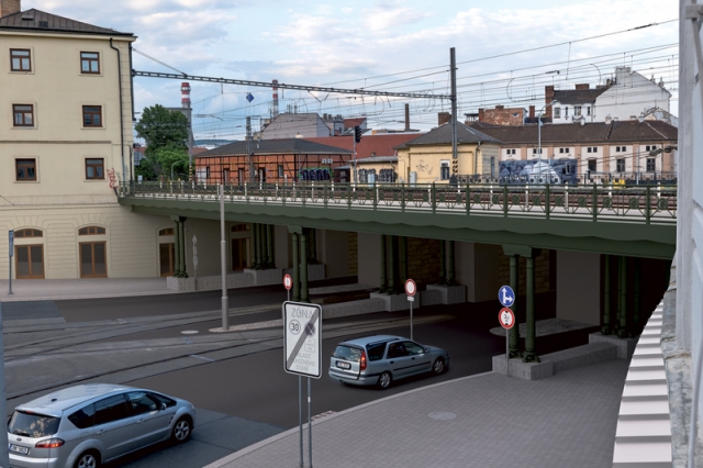 Vnější konstrukce s cihelnými klenbami byla odstraněna, protože její únosnost již byla nedostatečná. Klenby nahradila nová betonová spřažená deska uložená na příčníky. Deska byla opatřena spřahovacími trny a navázána na stávající ocelové prvky, které prošly otryskáním a novým protikorozním nátěrem. Tímto způsobem se podařilo zachovat maximum původních ocelových částí a zároveň významně zvýšit spolehlivost mostovky.