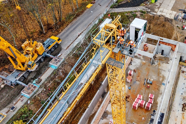 „Kvůli zajištění stání jeřábu byla nutná i úplná uzavírka přilehlé komunikace III/0138. Aby konstrukce unesla extrémní zatížení a byla zcela stabilní, vrtali jsme do skalního podloží. Kvůli svažitému terénu je zatížení jeřábu přenášeno prostřednictvím speciálně navržených železobetonových patek založených na sedmnáctimetrových mikropilotech. Jen montáž jeřábu trvala téměř dva dny. S tak mimořádnou délkou střešních panelů a sklonem terénu si mohl poradit jen největší jeřáb v Česku,“ říká Petr Lohniský, vedoucí projektu ze společnosti Metrostav CZ.