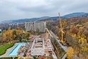 Stavba je technicky i logisticky mimořádně náročná – kombinuje instalaci velkoformátových konstrukcí, složitou bazénovou technologii, precizní hydroizolaci i nadstandardní vzduchotechniku. Založení nové stavby v lednu 2025 zkomplikoval nepřesný inženýrsko-geologický průzkum. Během výstavby se ukázalo, že pod stavbou se nachází hluboké vrstvy pískových sedimentů v kombinaci s podzemní vodou, což vedlo k nutnosti přepočítat statiku založení objektu. Protože je objekt navržen ve spolupůsobení plošného a hlubinného založení, bylo nutné stabilizovat zemní pláň štěrkovou sanací, aby se zvýšila její únosnost.