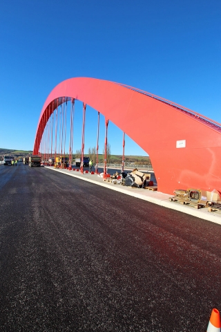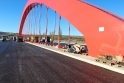 Most je unikátní hned v několika ohledech. Vyniká netradičním technickým řešením ocelové konstrukce, barevným odstínem přesně podle amerického Golden Gate Bridge a obloukem s výškou až 20 metrů. S rozpětím 115 metrů je druhým největším dálničním mostem na Moravě. „Nový dálniční most na D55, který se napojuje na obchvat Otrokovic, umožní kapacitní překonání řeky Moravy a výrazně zvýší plynulost a bezpečnost silničního provozu. Součástí je také protihluková stěna, která ochrání obytnou zástavbu Napajedel před hlukem z dálnice,“ doplnil ředitel Správy Zlín ŘSD Karel Chudárek.