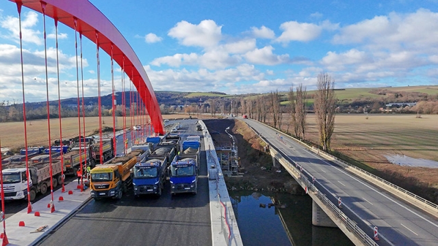 „Zatěžovací zkouška je nezbytná před spuštěním mostu do provozu. Ten může být sice teoreticky navržen podle výpočtů, ale praktická zkouška ukáže, zda konstrukce skutečně unese očekávané zatížení. Použití plně naložených nákladních vozidel simuluje reálnou provozní zátěž – nejvyšší, která se na mostě může objevit. Během zkoušky měříme prohnutí, posuny a napětí v konstrukci. To ukazuje, jak se most chová při maximálním zatížení a zda jsou deformace v bezpečných mezích,“ vysvětlil správce stavby z ŘSD Pavel Dvořák.