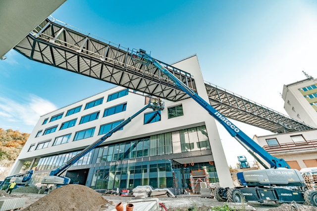 Součástí projektu je i montáž nadzemního spojovacího koridoru s příhradovou konstrukcí. Ten v délce 83 metrů propojí nový pavilon s pavilonem emergency a interny, přičemž jednotlivá napojení jsou v různých výškových úrovních.„Montáž spojovacího koridoru probíhala za pomoci dvou autojeřábů a manipulačních plošin. Díky perfektnímu přístupu zástupců nemocnice veškerá montáž hlavní ocelové konstrukce probíhala podle domluveného harmonogramu bez větších komplikací ve vztahu k provozu nemocnice,“ pochvaluje si Mareš spolupráci s objednatelem.