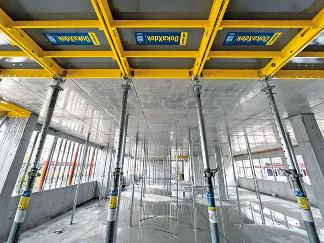 Pro realizaci stropních desek je na trhu nově stropní bednění DokaXdek, které se po premiéře na letošním veletrhu bauma objevuje i na tuzemských stavbách. Stropní bednění DokaXdek přináší na stavbu zcela nový pohled na realizaci vodorovných ploch. Namísto tradičních nosníků a bednicích desek jsou nasazeny panely, jejichž rozměry (základní panel 2 m2) jsou optimalizovány tak, aby díky logickému rastru prvků pokryly i složitější půdorysy. Bednění je navíc možné instalovat ze země, tudíž odpadají nebezpečné práce ve výškách. Bednění je navíc vybaveno pojistkou proti nechtěnému zvednutí; tu je však v případě potřeby (například vyjmutí jednotlivého panelu z už zabedněné plochy) možno deaktivovat. Celý systém navíc používá jednu hlavici, která lze umístit kdekoliv v rámci rámu panelu. Tím je využití systému ještě flexibilnější a pružnější. Panely jsou vybaveny deskou Xlife, která díky kompozitní konstrukci nabízí nejen vysokou obrátkovost, ale po dobu životnosti také perfektně hladký otisk v betonu. Sami tesaři si pochvalují, že práce s bedněním DokaXdek je až třikrát rychlejší než s tradičními nosníkovými systémy jako je například Dokaflex. Velký bonus spatřují nejen v rychlé instalaci, ale také v bezpečnosti práce.