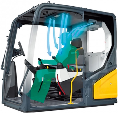 Masivní kabina je navržena bez hledání kompromisů a je plně orientována na řidiče prostřednictvím špičkové a snadno ovladatelné 8palcové dotykové obrazovky, všestranně programovatelných a super ergonomických elektronických ovládacích pák, měřiče užitečného zatížení Komatsu, 2D ovládání stroje a 2D ovládání hranic, přizpůsobitelného hydraulického nastavení, nového režimu P+ pro práci mimo rozsah úložného prostoru, joystickového řízení a systému identifikace obsluhy, který ukládá až 50 profilů. Po rozpoznání řidiče pomocí elektronického klíče nebo zadaného ID se jeho uložený profil automaticky načte. To umožňuje snadné střídání obsluhy stroje.