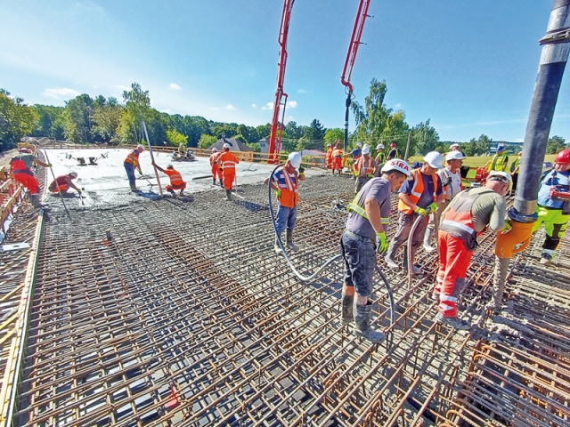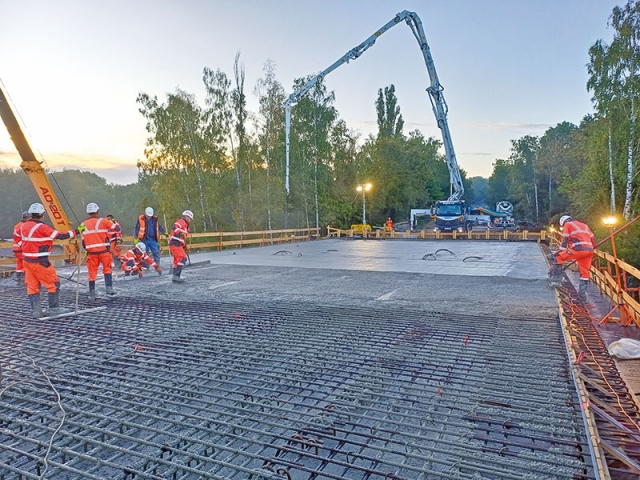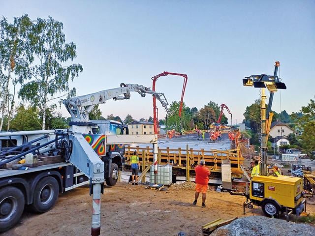 Nejvýznamnější moment nastal začátkem září 2025, kdy proběhla betonáž konstrukce mostovky. Už od časných ranních hodin směřovaly na staveniště mixy z betonáren ZAPA v Havlíčkově Brodě a Chotěboři. Tři výkonná čerpadla během jednoho dne uložila do bednění více než 520 m3 betonu C 35/45 XF2 S4 Dmax 16. Statické požadavky konstrukce byly mimořádné – modul pružnosti 26 GPa potřebný pro předpínání mostu byl dosažen již čtyři dny po uložení betonu. Celý proces betonáže probíhal hladce a precizně – tak, jak je u ZAPA beton standardem.