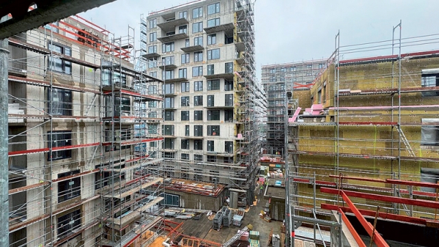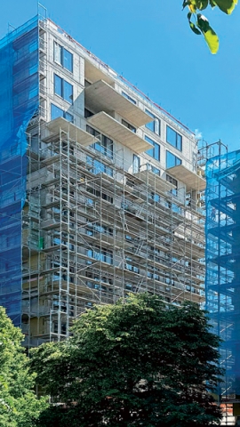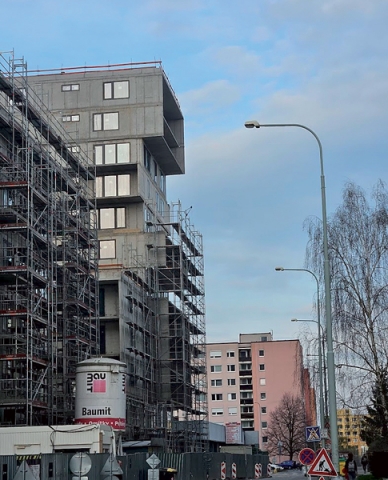 Tento projekt vynikal nejen rozsahem – šlo o montáž zhruba 25 000 m2 fasádního lešení Layher Blitz o šířce 0,72 m, kombinovaného se systémem Layher Allround a příhradovými nosníky – ale především technickými výzvami, které bylo nutné překonat.