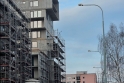 - Založení lešení ve více řadách ve stejném půdorysném rozložení polí. Tento postup umožnil elegantně obejít vystupující balkony, aniž by došlo ke ztrátě stability nebo kontinuity lešení.