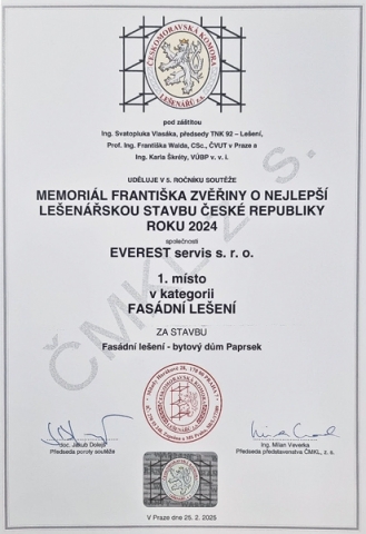 Získané ocenění „Nejlepší fasádní lešení roku“ vnímá společnost jako uznání dlouhodobé práce svého týmu a potvrzení, že i v rámci běžných rezidenčních projektů lze uplatnit špičkové lešenářské technologie a individuální přístup.