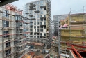 Výška lešení přesahující 40 metrů, omezené prostory vnitrobloku a komplikované zakládání v okolí balkonů a teras představovaly kombinaci faktorů, které by méně zkušeného dodavatele mohly odradit.