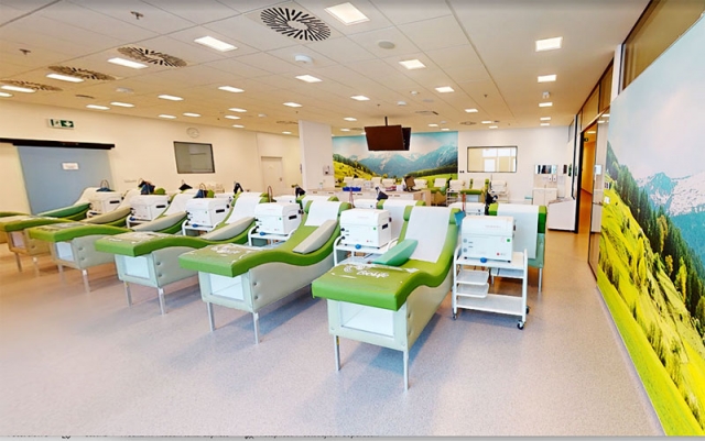 Projekt respektuje specifické požadavky provozu – návštěvníci nejsou pacienti, ale zdraví dobrovolní dárci, což se promítlo do celkové koncepce méně institucionálního a více vstřícného prostředí.