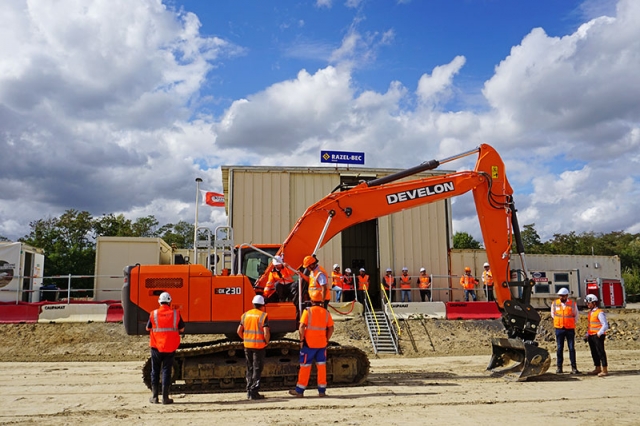 Stephane Dieu dále uvedl: „Nové rypadlo Develon DX230LC-9 použité při demonstraci bylo vybaveno celou řadou chytrých bezpečnostních technologií, jako jsou varování před rizikem kolize nebo systém monitorování okolí. Mezi nimi si zvláštní pozornost obsluhy stroje a účastníků předváděcí akce získal systém E-STOP, který je podobný systémům nouzového brzdění v automobilech. Develon plánuje systém E-Stop dále rozvíjet a od ledna příštího roku jej začít uvádět na evropský trh.“