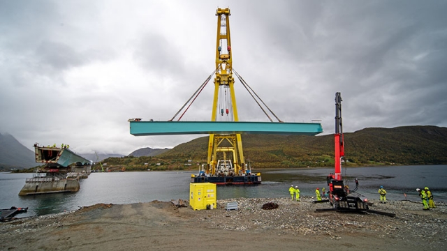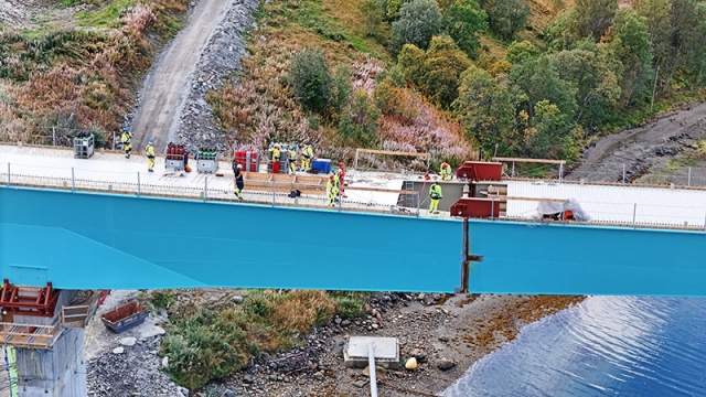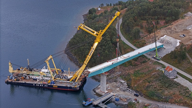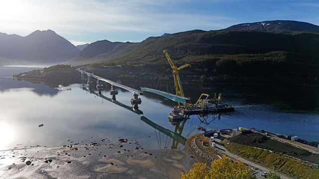 „Dle lokálních zdrojů šlo o největší zdvih uskutečněný v Norsku pomocí lodního jeřábu. O to víc si cením toho, že se nám daří tuto kritickou operaci zvládnout v souladu s harmonogramem. Nyní provádíme tzv. finální podlití ložisek a zahajujeme svářečské práce. Ocelová konstrukce mostu by tak měla být hotová na přelomu roku a následně můžeme navázat betonážemi,“ vysvětlil Matěj Novotný, vedoucí projektu z Metrostavu Norge.