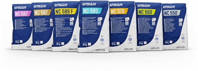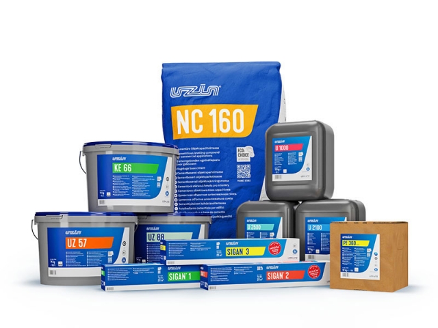 UZIN NC 182: Stabilní opravná cementová hmota s rychlým schnutím, vhodná pro vysoko namáhané plochy v interiéru.