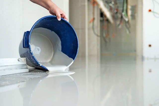 Samonivelační hmoty UZIN se snadno rozlévají a vytváří dokonale rovný podklad pro pokládku podlahových krytin